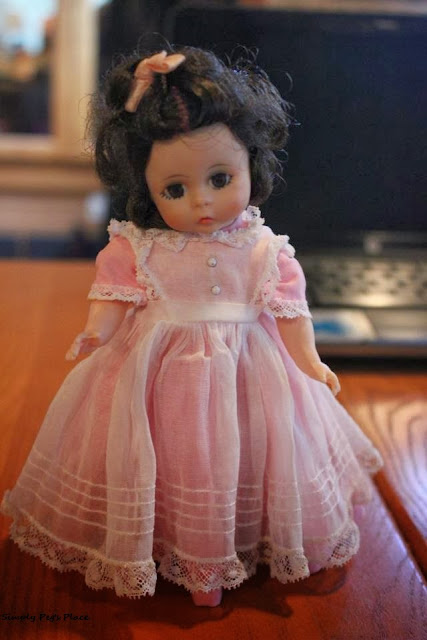 the second (In pink) is also from the 1940's she went to my best friends mom. she was only $7 and a Madam Alexander doll. the 3rd doll I just found..she is Also madam Alexander and I found her for only $5 (she is the one in yellow)